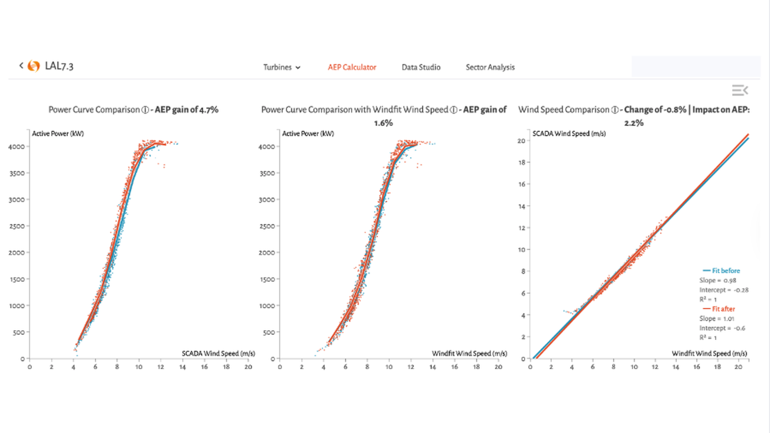 The AEP Calculator enables you to objectively validate performance changes by comparing corrected power curves before and after operational adjustments, thereby translating diagnostics into a measurable energy impact.